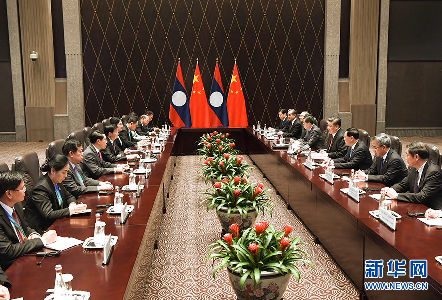 11月4日,國(guó)家主席習(xí)近平在上海會(huì)見老撾總理通倫。 新華社記者 丁海濤 攝