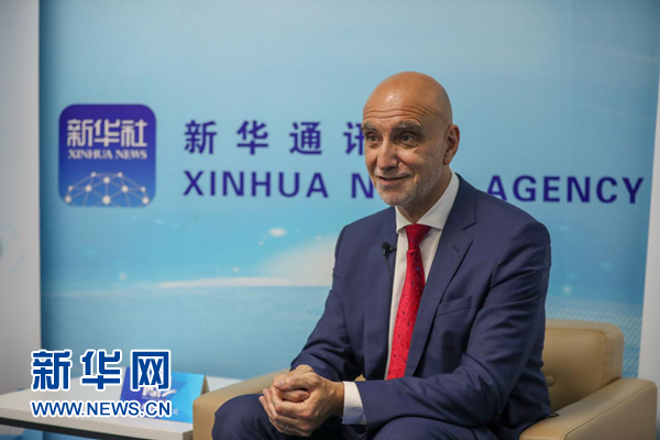 圖為達(dá)能公司高級副總裁帕斯卡爾·德彼得里尼接受新華網(wǎng)獨(dú)家專訪。新華網(wǎng) 郭小天攝