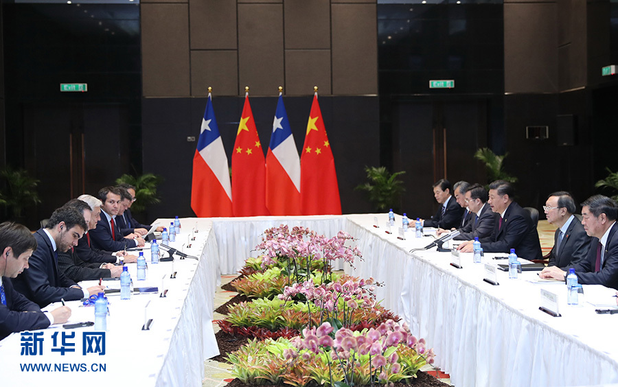 習(xí)近平強(qiáng)調(diào),中智已經(jīng)簽署“一帶一路”政府間合作協(xié)議,下一步要確定重點(diǎn)領(lǐng)域和項目,爭取實現(xiàn)早期收獲。要充分發(fā)揮雙邊合作機(jī)制作用。要以中智自由貿(mào)易協(xié)定升級為契機(jī),推動擴(kuò)大雙邊貿(mào)易規(guī)模,優(yōu)化貿(mào)易結(jié)構(gòu),深化投資合作,扎實推進(jìn)重大互聯(lián)互通項目。2020年中智將迎來建交50周年,雙方要共同辦好一系列慶?;顒?。中方愿同智方加強(qiáng)科技、南極等領(lǐng)域合作。中方支持智利明年主辦亞太經(jīng)合組織領(lǐng)導(dǎo)人非正式會議,共同推進(jìn)亞太自由貿(mào)易區(qū)建設(shè)。