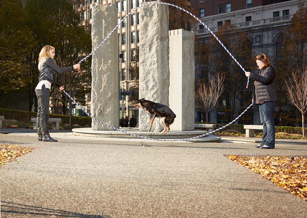 小狗Geronimo也是被Samantha救助并領(lǐng)養(yǎng)的狗。Geronimo是一只邊境牧羊犬和卡爾比犬的混種母犬,性格活潑,是“1分鐘一只狗完成最多的交互跳繩”的世界紀錄保持者。經(jīng)過六個星期的訓練,Samantha發(fā)現(xiàn)Geronimo變得難以配合訓練,于是她想出增加一根跳繩的方法。這使她很快就發(fā)現(xiàn)Geronimo簡直是一個交互跳繩天才!