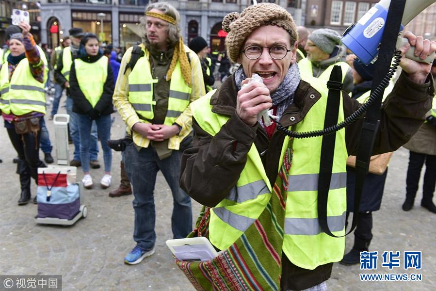當?shù)貢r間12月15日,荷蘭阿姆斯特丹,當?shù)乇l(fā)“黃背心”抗議活動。(圖片來源:視覺中國)