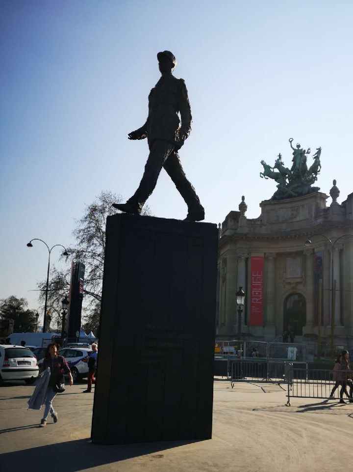如果說(shuō)埃菲爾鐵塔是巴黎浪漫之都的代表,那么凱旋門就是見(jiàn)證法蘭西榮光與夢(mèng)想的政治地標(biāo)。至今,這里仍是法國(guó)國(guó)慶、閱兵以及迎接尊貴客人等重要慶典或政治活動(dòng)的舉辦地。以凱旋門為圓心,12條大道向巴黎各方輻射開(kāi)去,以八方游客的“打卡勝地”香榭麗舍大街最為寬闊。熙攘人流中,靜靜矗立一座銅像——深受法國(guó)人愛(ài)戴的戴高樂(lè)將軍邁步向前。