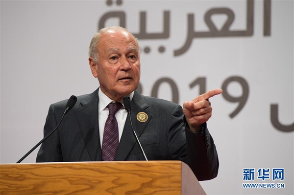 3月31日,在突尼斯首都突尼斯市,阿拉伯國(guó)家聯(lián)盟秘書長(zhǎng)蓋特在記者招待會(huì)上講話。新華社記者 孟濤 攝