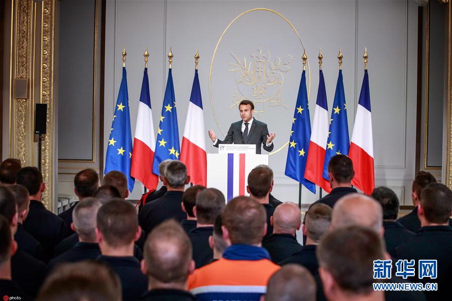 馬克龍接見(jiàn)參與巴黎圣母院救火任務(wù)消防員