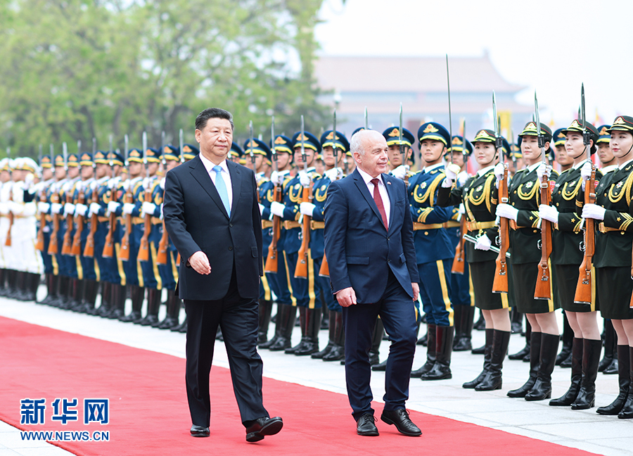 4月29日,國家主席習(xí)近平在北京人民大會(huì)堂同瑞士聯(lián)邦主席毛雷爾舉行會(huì)談。這是會(huì)談前,習(xí)近平在人民大會(huì)堂東門外廣場為毛雷爾舉行歡迎儀式。 新華社記者 劉衛(wèi)兵 攝