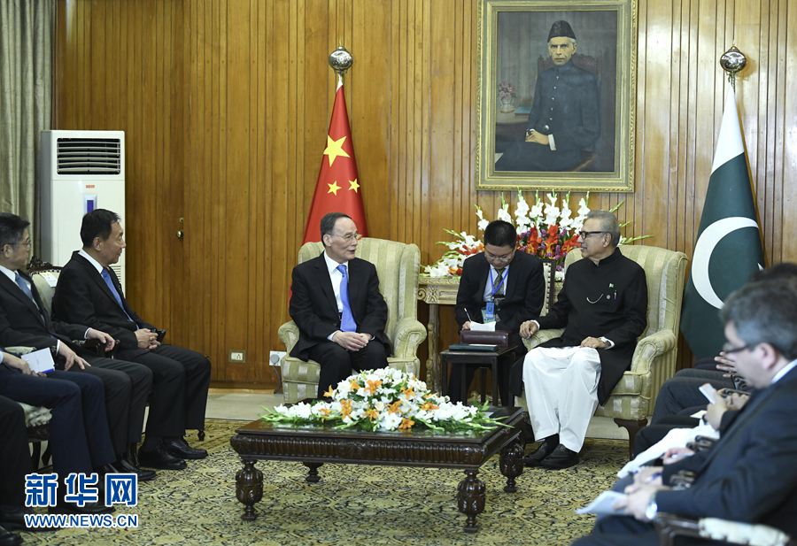 會見阿爾維時,王岐山表示,中巴是“鐵桿”朋友。建交68年來,無論國際風(fēng)云如何變幻,兩國始終在涉及彼此核心利益問題上相互尊重、相互支持,結(jié)下了最真誠的友誼。近年來,中巴關(guān)系發(fā)展勢頭良好,雙方政治互信進一步增強,務(wù)實合作不斷深化,人文交往更加活躍。中巴經(jīng)濟走廊建設(shè)取得實實在在的成果,已成為新時期中巴友好合作的重要標(biāo)志。我這次訪巴,就是再次向兩國人民和世界發(fā)出中巴是全天候戰(zhàn)略合作伙伴的訊號。中方愿同巴方加強各領(lǐng)域、各層次、全方位合作,讓中巴友好更好地惠及兩國和兩國人民,打造新時代更緊密的中巴命運共同體。
