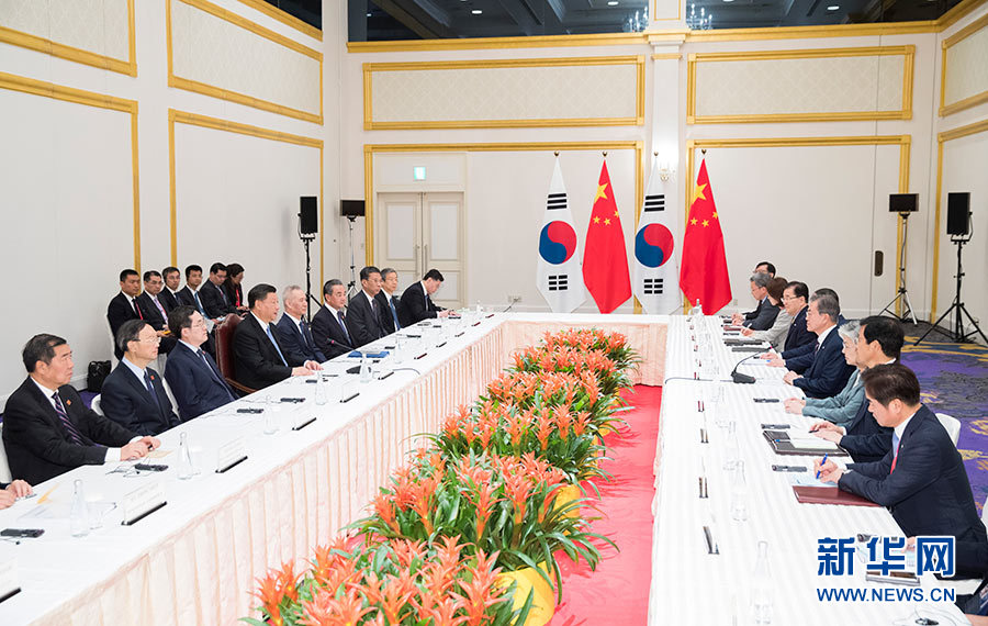 習近平指出,加強中韓友好合作符合歷史潮流,也是兩國人心所向。中方愿同韓方堅持以誠相待,努力實現合作共贏,推動兩國關系不斷向前發(fā)展,并為朝鮮半島和地區(qū)和平穩(wěn)定作出貢獻。雙方要保持各層次溝通,把穩(wěn)雙邊關系發(fā)展大方向。要把握共建“一帶一路”機遇,加快中韓自由貿易協(xié)定第二階段談判,不斷擴大貿易、科技、財經、環(huán)保等領域合作。要積極開展人文交流,鞏固中韓民間友好。中韓合作完全是互利雙贏的,不應該受到外部壓力影響。希望韓方繼續(xù)重視、妥善處理好兩國間有關問題。雙方要加強在聯(lián)合國、二十國集團等多邊框架內的協(xié)調,共同反對保護主義,支持多邊主義和自由貿易體制,推動構建開放型世界經濟。