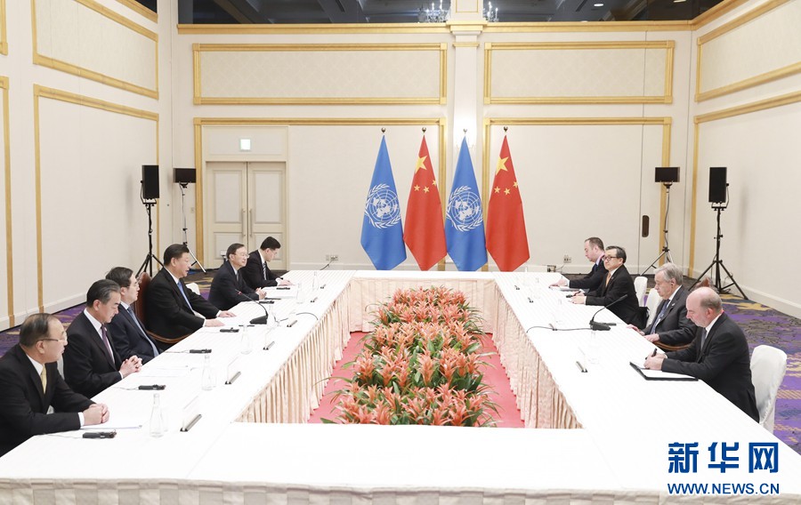 習(xí)近平指出,中國始終支持多邊主義,支持聯(lián)合國在國際事務(wù)中發(fā)揮積極作用。形勢越是復(fù)雜嚴(yán)峻,越要彰顯聯(lián)合國的權(quán)威和作用。我們要推動全世界在聯(lián)合國旗幟下,實現(xiàn)更大團(tuán)結(jié)和進(jìn)步。中國將繼續(xù)以實際行動支持聯(lián)合國和秘書長的工作。