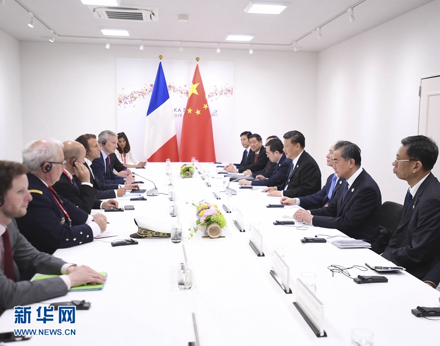 6月29日,國(guó)家主席習(xí)近平在大阪會(huì)見法國(guó)總統(tǒng)馬克龍。 新華社記者 燕雁 攝
