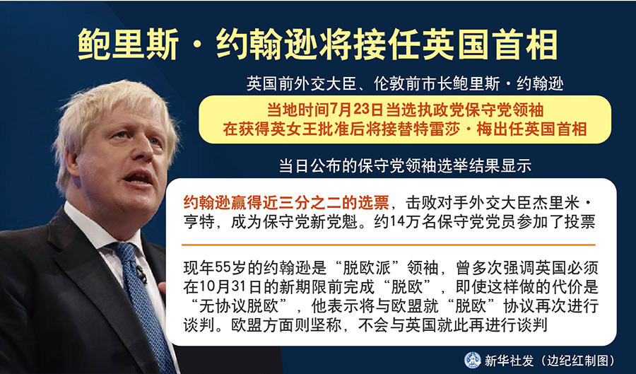 新華社倫敦7月23日電(記者桂濤 楊曉靜)英國前外交大臣、倫敦前市長鮑里斯·約翰遜23日當(dāng)選執(zhí)政黨保守黨領(lǐng)袖,在獲得女王伊麗莎白二世批準(zhǔn)后將接任英國首相。