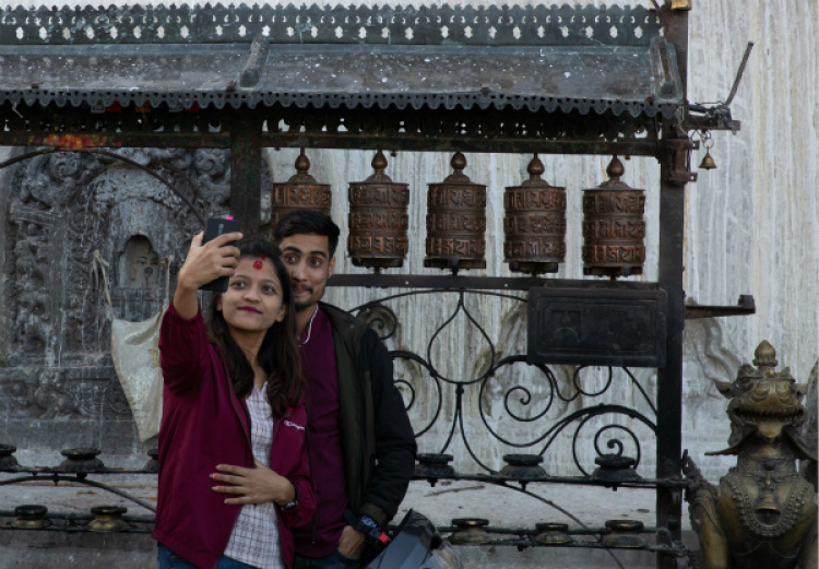 山多、古跡多、節(jié)日多是尼泊爾為人津津樂道的三個(gè)特色?!暗沦惞?jié)”是尼泊爾的最大節(jié)日。與中國(guó)人過春節(jié)習(xí)俗相似,尼泊爾人也要在節(jié)日期間家庭團(tuán)聚、走親訪友。額頭的紅色“提卡”是來自長(zhǎng)輩的祝福。新華社記者王婧嬙攝