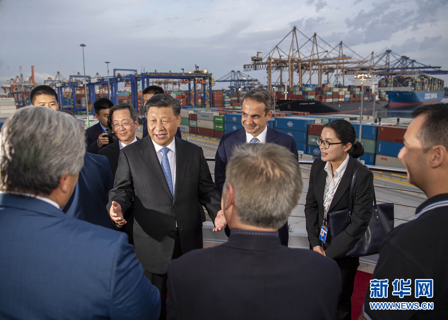 習近平說,很高興來到比雷埃夫斯港參觀。百聞不如一見。今天我在這里看到,中國倡議的“一帶一路”不是口號和傳說,而是成功的實踐和精彩的現(xiàn)實?!耙粠б宦贰背h堅持共商共建共享,不是一家說了算,而是大家共擔責任,共享成果。中國在對外交往中秉持正確義利觀。我很高興得知,在你們困難的時候,中遠海運比雷埃夫斯港項目幫了你們。你們把比雷埃夫斯港建設好,就是共建“一帶一路”的重要參與者和貢獻者。祝你們工作順利、生活幸福。