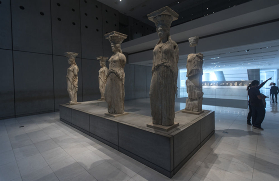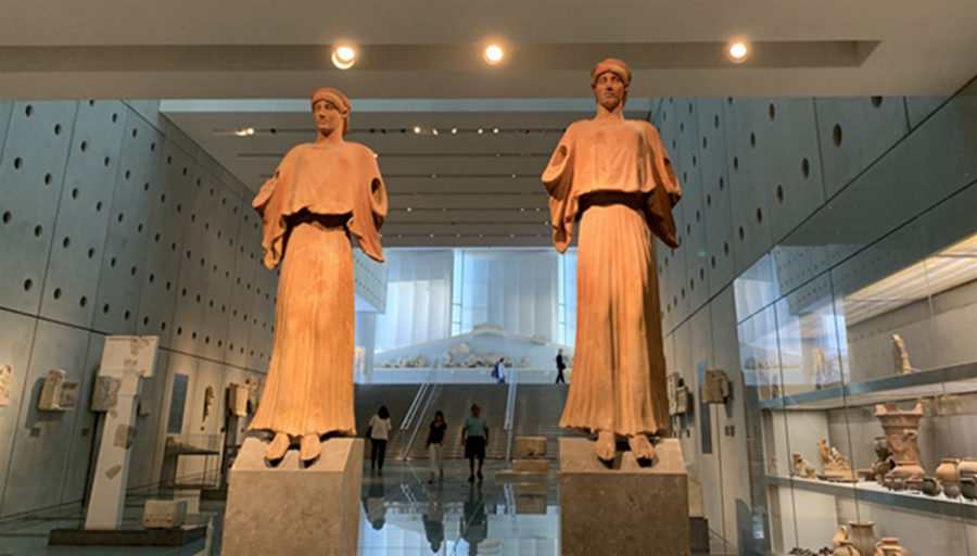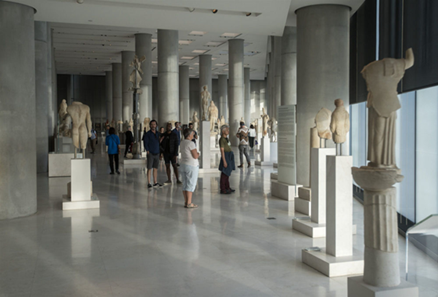 地中海溫暖的陽光透過雅典衛(wèi)城博物館玻璃幕墻灑入展廳,一座座古希臘神話人物和建筑雕像栩栩如生,展示著美和力量,訴說著希臘古典藝術(shù)的燦爛輝煌,令人仿佛徜徉于歷史長河里,沉醉在文明畫卷中。