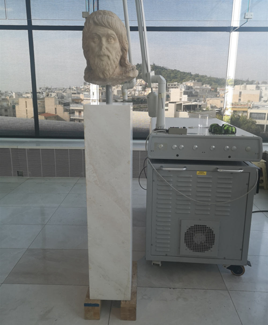 希臘方面向習(xí)主席介紹了激光文物修護(hù)技術(shù),圖為相關(guān)設(shè)備。新華社記者郝薇薇攝
