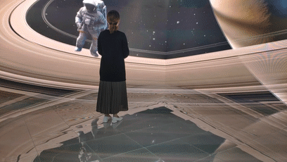 你可以置身蒼茫大漠中的火箭發(fā)射基地,感受火箭從腳下的大屏幕震撼升空;你可以穿過空間隧道,遨游眼睛形狀的宇宙星河,和宇航員來個(gè)親切擁抱;你還可以站在海面上,看巨大的鯨魚騰空躍出水面……
