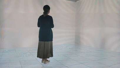 9月5日,新華網(wǎng)記者體驗(yàn)MR混合現(xiàn)實(shí)互動演播廳。 李雪梅拍攝 劉鐘靈制作
