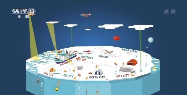 科考隊(duì)還花了18天時間,在浮冰上搭建起一座研究基地??瓶妓玫脑O(shè)備都被布放在不同的分區(qū),在“水下機(jī)器人”中心,利用遠(yuǎn)程操作工具,就可以收集海冰之下的觀測數(shù)據(jù),并將這些數(shù)據(jù)傳回“極星”號;在海洋中心,科考隊(duì)員在冰層上鉆孔,把觀測設(shè)備降至海冰之下,采集海水樣本;在海冰研究中心,科考隊(duì)員們可以研究和觀察海冰和冰上的雪覆蓋。而在大氣中心,科學(xué)家們可以收集研究大氣和空氣成分。