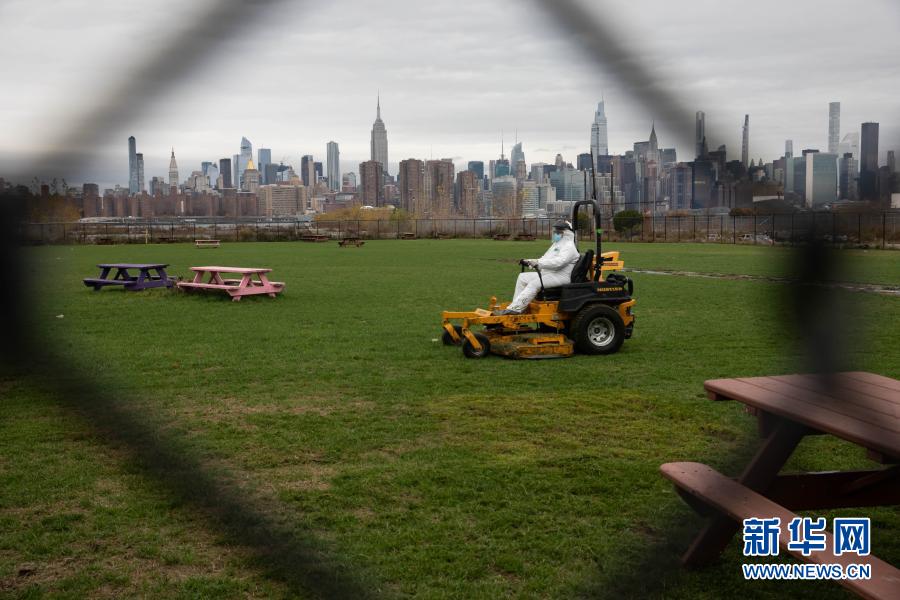 11月12日,在美國紐約一座公園,工人在養(yǎng)護草坪。新華社發(fā)(郭克攝)