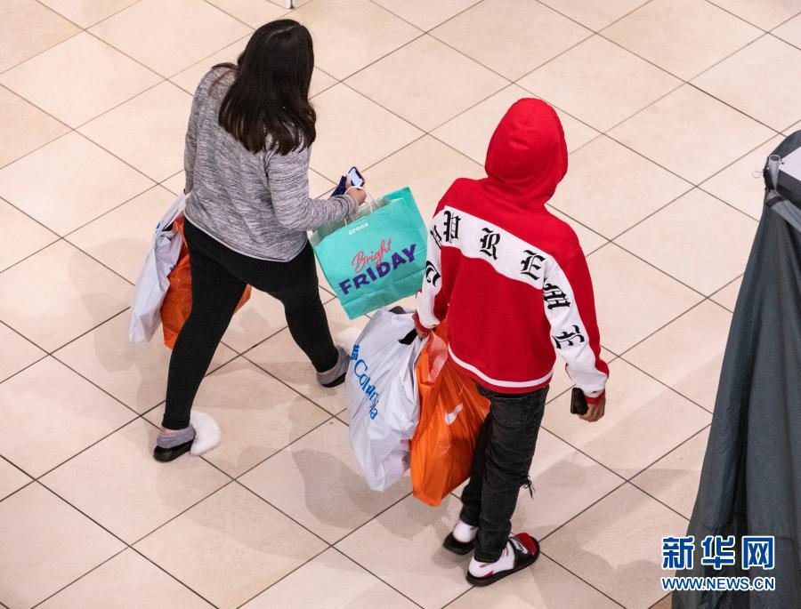 11月27日,在美國(guó)伊利諾伊州羅斯芒特,人們?cè)谝患屹?gòu)物中心購(gòu)物。