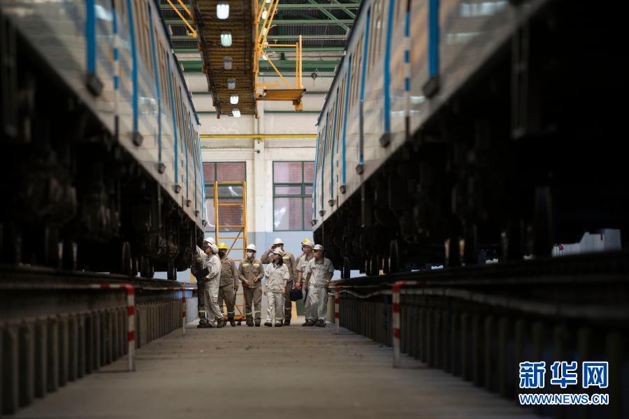 11月16日,在布宜諾斯艾利斯省拉瓦約,中國和阿根廷技術(shù)人員對列車進行日常檢查。 新華社發(fā)(馬丁·薩巴拉攝)