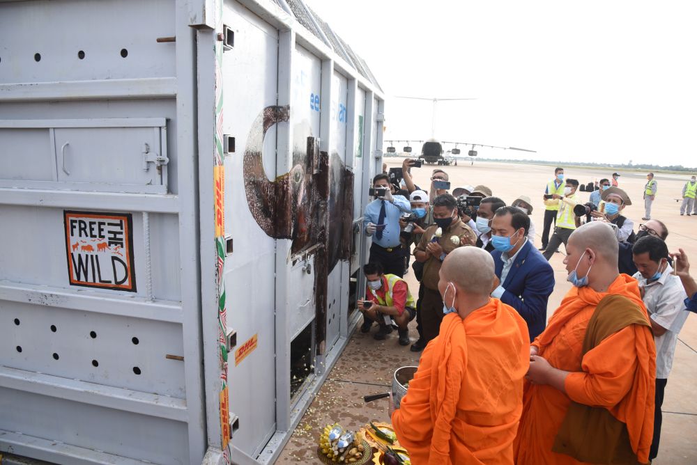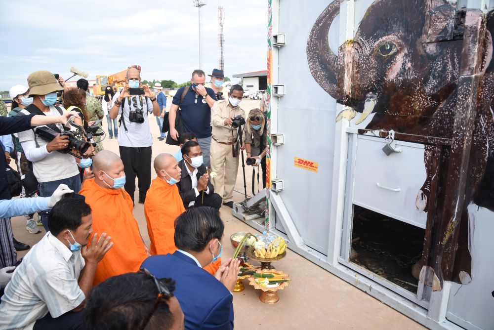 經(jīng)歷7小時飛行后,“卡萬”抵達柬埔寨東北部城市暹粒。然后它將經(jīng)歷數(shù)小時卡車運輸?shù)诌_保護區(qū)——那里有80多頭象。