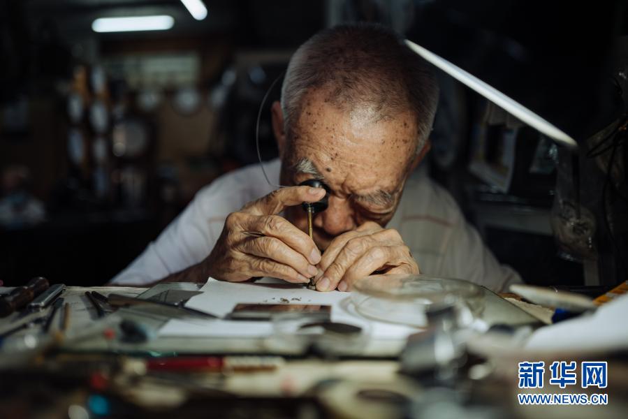 12月5日,在馬來(lái)西亞雪蘭莪州巴生的郁昌表行,韋華在維修手表。新華社記者 朱煒 攝