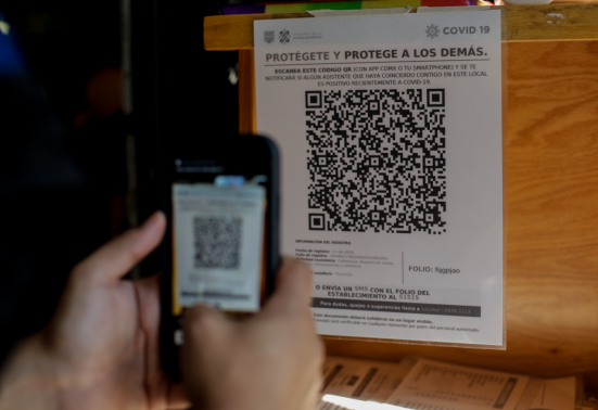 記者在墨西哥城街頭看到,一些銀行、電影院、博物館、購物中心等場所入口顯眼處貼有二維碼,民眾掃碼數(shù)秒后,便會生成地點(diǎn)和時間等基本數(shù)據(jù)。