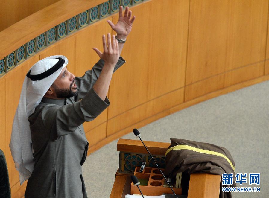 12月15日,在科威特首都科威特城的國民議會(huì)大廈,馬爾祖克·加尼姆在當(dāng)選為新議長后歡呼。新華社發(fā)(阿薩德攝)