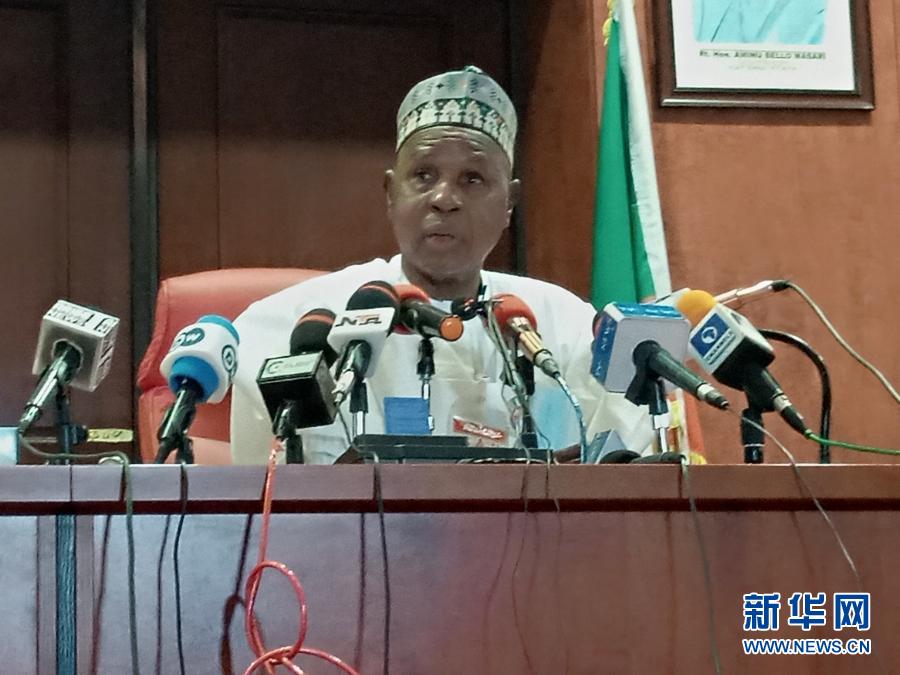 12月18日,在尼日利亞卡齊納州卡齊納市,卡齊納州州長阿米努·馬薩里出席獲釋學(xué)生的迎接儀式時講話(手機照片)。新華社發(fā)(奧瓦勒·易卜拉欣攝)
