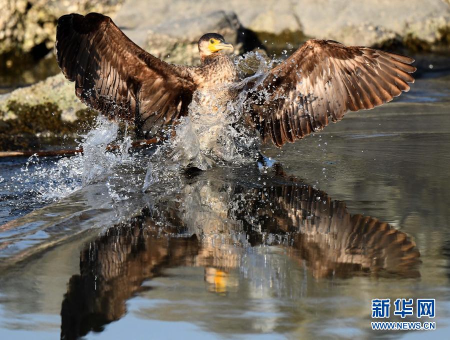 12月20日,一只鸕鶿在科威特杰赫拉省海邊覓食。新華社發(fā)(加齊攝)