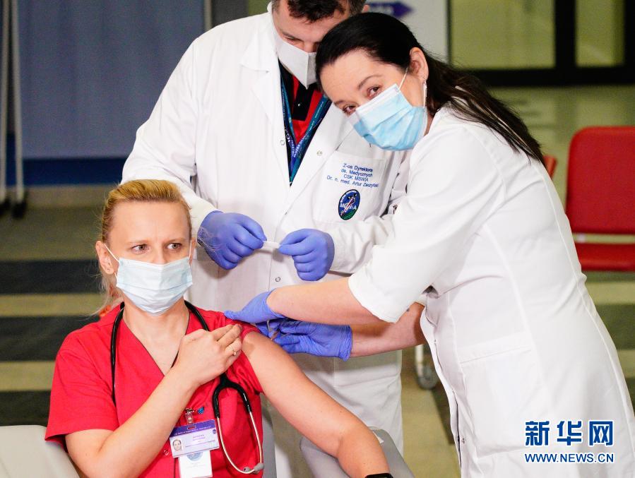 12月27日,在波蘭首都華沙一家醫(yī)院,一名醫(yī)生接種新冠疫苗。新華社發(fā)(亞普·阿林?jǐn)z)
