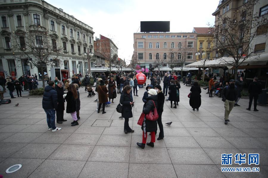 12月29日,在克羅地亞首都薩格勒布,人們在地震后聚集在市中心的一處廣場。新華社發(fā)(Pixsell圖片社 烏魯卡洛維奇攝)