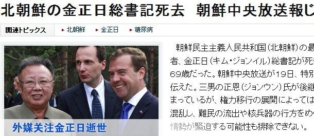 朝中央社有關(guān)金正日去世報道的全文內(nèi)容
